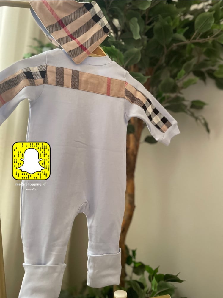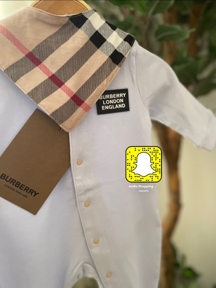 طقم مواليد بيربري راقي مع صدرية كاروهات
